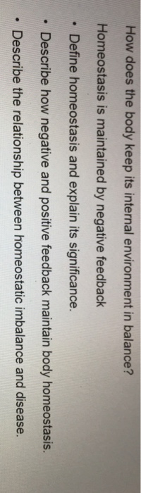 The body has so many different types of systems that it may be homeostatic in some regards and off balance in others. Eventually homeostatic imbalance may lead to disease. Homeostasis and the relationship between homeostatic imbalance and disease When the human body is maintained in a steady state the condition is called homeostasis. This can cause homeostatic imbalance a condition in which variables in the internal environment are no longer maintained within normal ranges. Homeostatic imbalance and disease state in humans leads to the occurence of a variety of diseases and metabolic disorder involving the following organs---1muscles 2kidney 3digestive organs like sto view the full answer Previous question Next question Get more help from Chegg Get 11 help now from expert Biology tutors. A clean and minimal question and answer theme for WordPress and AnsPress. Concisely describe the process of body temperature regulation in 80-100 words. There are a wide variety of things that can cause homeostatic imbalance but the most easily identifiable is disease. As an organism ages weakening of feedback loops gradually results in an unstable internal environment.