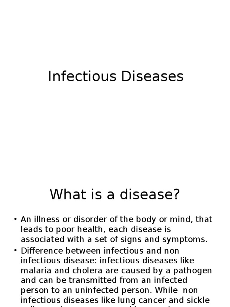 Is that disease is pathology an abnormal condition of the body or mind that causes discomfort or dysfunction. 5 filas Infection is a kind of bodys immune response against the attack of the pathogen. Infectious illnesses tend to occur suddenly and be short-lived.