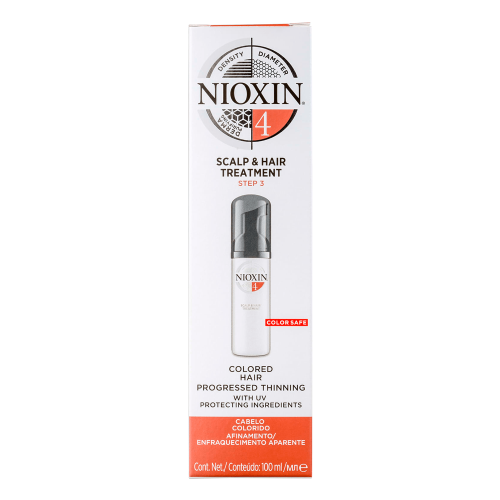 Protect and refresh the scalp with Nioxins 3-part System 4 Scalp Hair Treatment for Colored Hair with Progressed. NIOXIN System 4 Scalp Treatment 338 oz. NIOXIN System 4 Scalp Treatment is a volumizing leave-on treatment for noticeably thinning fine chemically-treated hair.