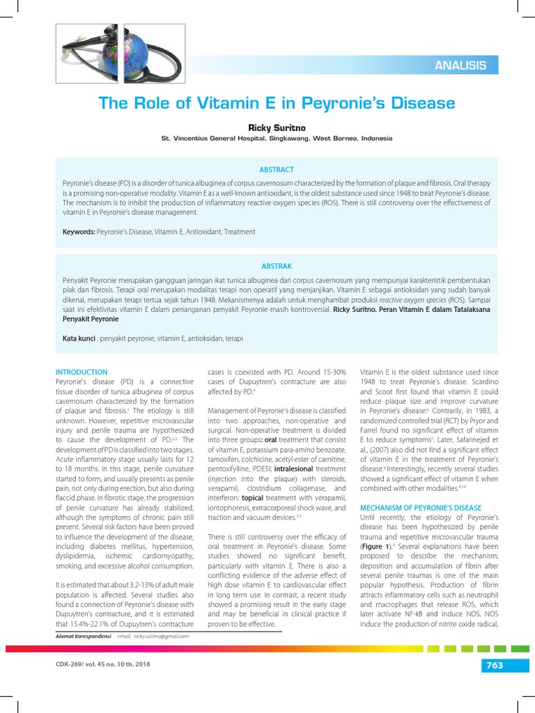 Vitamin e and peyronie's disease. Prog Reprod Biol 1983941-5. Long-term multimodal therapy verapamil associated with propolis blueberry vitamin E and local diclofenac on patients with Peyronies disease chronic inflammation of the tunical albuginea. Vitamin E is a powerful antioxidant that may help reduce free radical damage and slow the aging process of your cells.
